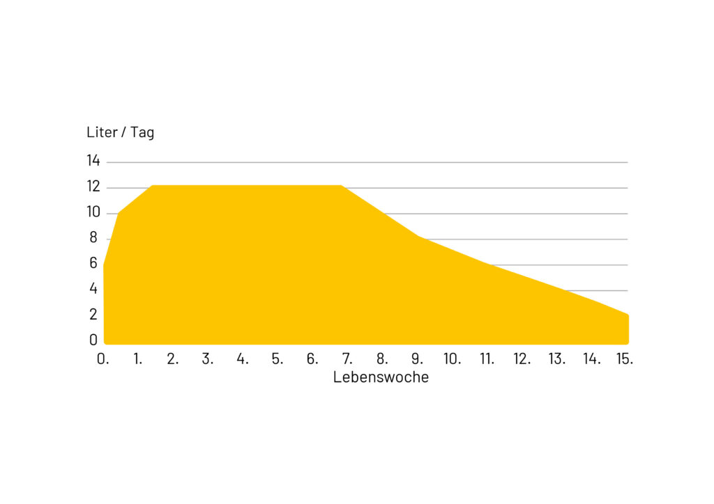 2. Tränkemengen und Tränkeplan konsequent an Alter und Entwicklungsstand der Kälber anpassen (Tränkekurve beachten).
