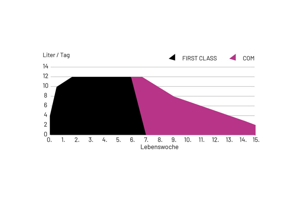 NORMI Kälbermilch COM eignet sich optimal für die Phasentränke im Anschluss an NORMI Kälbermilch ASS. Die Abtränkphase sollte erst beginnen, wenn das Verdauungssystem des Kalbes ausreichend entwickelt ist. In dieser Phase wird die Milchmenge schrittweise reduziert, während die Aufnahme von Festfutter kontinuierlich zunimmt.