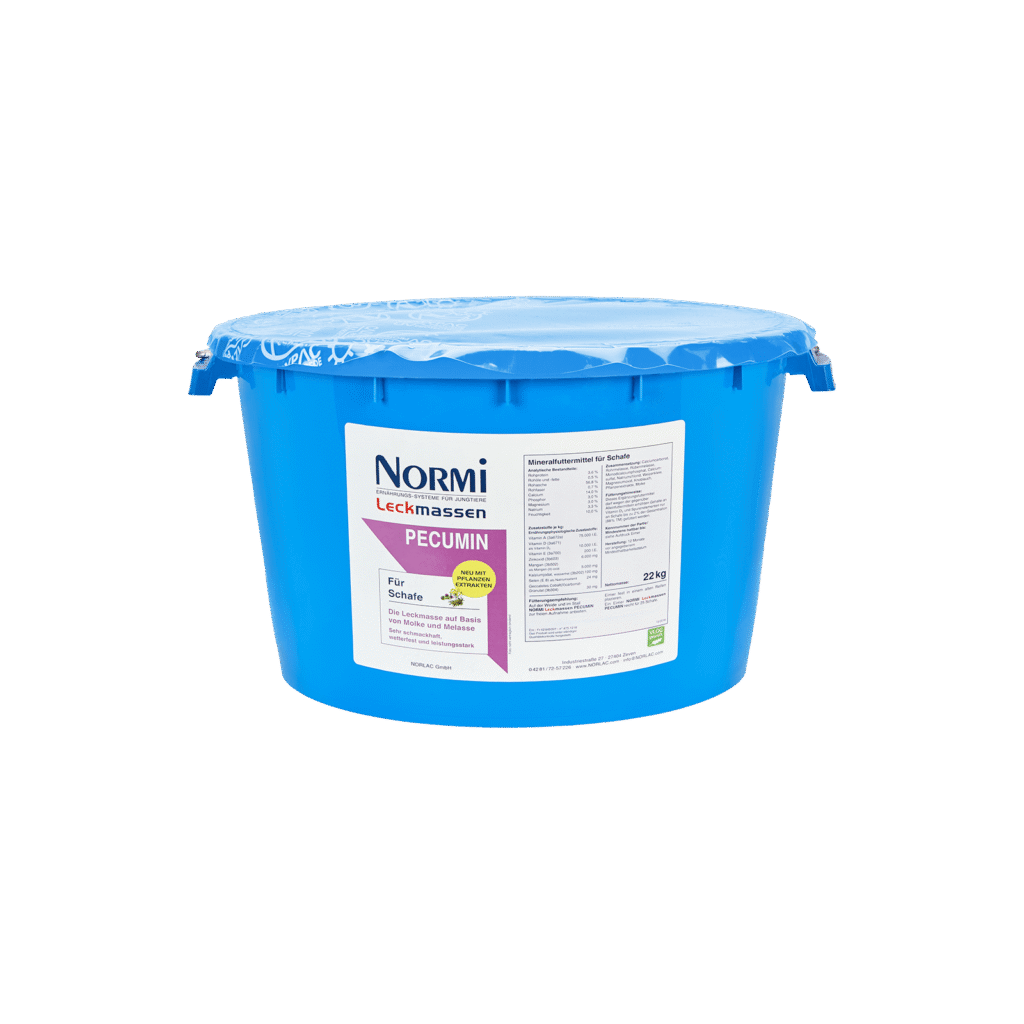 NORMI Leckmasse PECUMIN ist eine speziell entwickelte Leckmasse für Schafe und Ziegen zur gezielten Mineralstoff- und Vitaminversorgung. Sie ergänzt die tägliche Ration als mineralisches Ergänzungsfuttermittel und unterstützt eine gleichmäßige Nährstoffaufnahme. NORMI Leckmasse PECUMIN eignet sich für den Einsatz im Stall und auf der Weide und kann während der gesamten Weide- und Stallperiode eingesetzt werden.